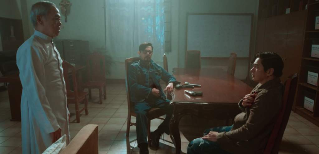The series of action shots shows father and son duo Ramon (Christopher De Leon) and Tanggol (Coco Martin) fighting side-by-side in an abandoned warehouse. It also features dramatic photos of the upcoming torture scenes of Rigor (John Estrada) and Roberto (Albert Martinez) against Tindeng (Charo Santos) and Roda (Joel Lamangan).
