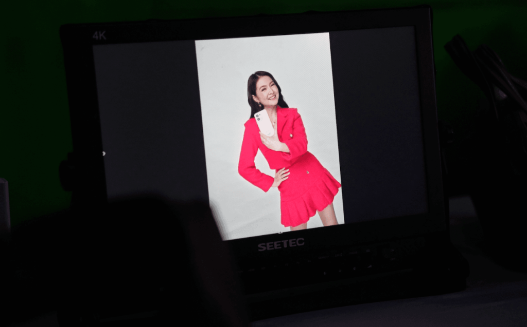 When glam time hits, AI Editor helps her polish quick takes and BTS shots she can share between scenes, while AI Studio provides fresh suggestions for her wardrobe by providing generated portraits in various styles.