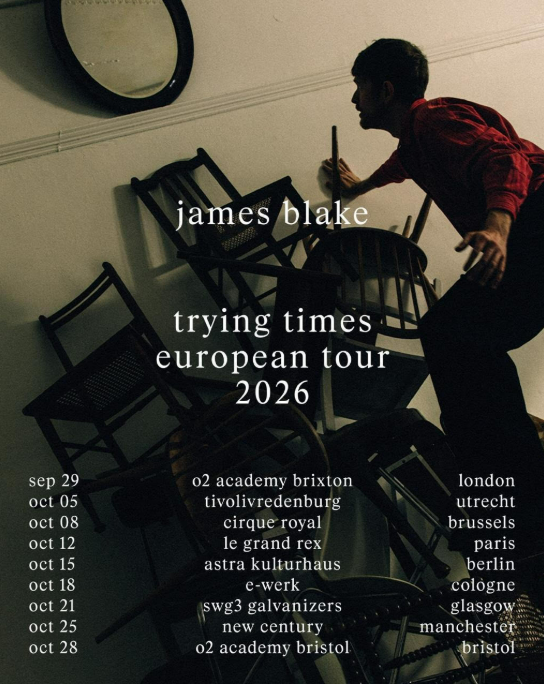 Alongside the new record, Blake has also announced details of his upcoming European tour, set to begin in September, including a special stop at London’s O2 Academy Brixton. The dates follow the earlier announcement of his North American run, which features two sold-out shows at NYC’s Brooklyn Paramount, as well as a sold-out show at Toronto’s HISTORY. The full dates can be found below.