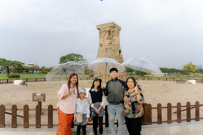 Melai Cantiveros-Francisco and her family at Cheomseongdae Observatory, Gyeongju