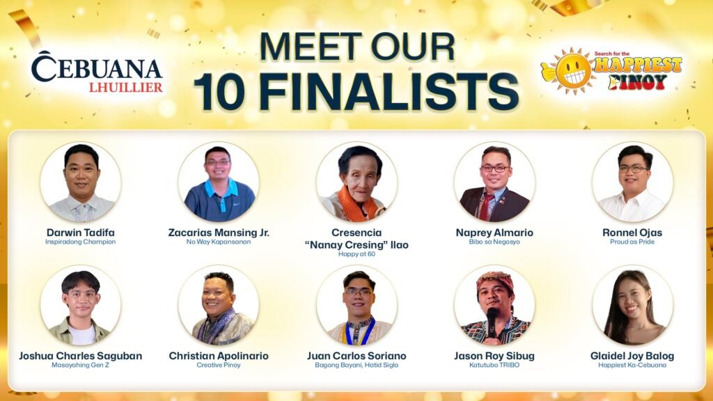 Cebuana Lhuillier proudly announces the Top 10 finalists of the 2025 Happiest Pinoy—extraordinary Filipinos whose stories of resilience, optimism, and service rose to the top of this year’s nationwide search, following a thorough external judging process that identified each one as a true reflection of the Filipino spirit at its strongest. Another round of panel interviews will determine the grand winner, with the contenders sharing their defining challenges, the reach of their initiatives, and their vision for the future.