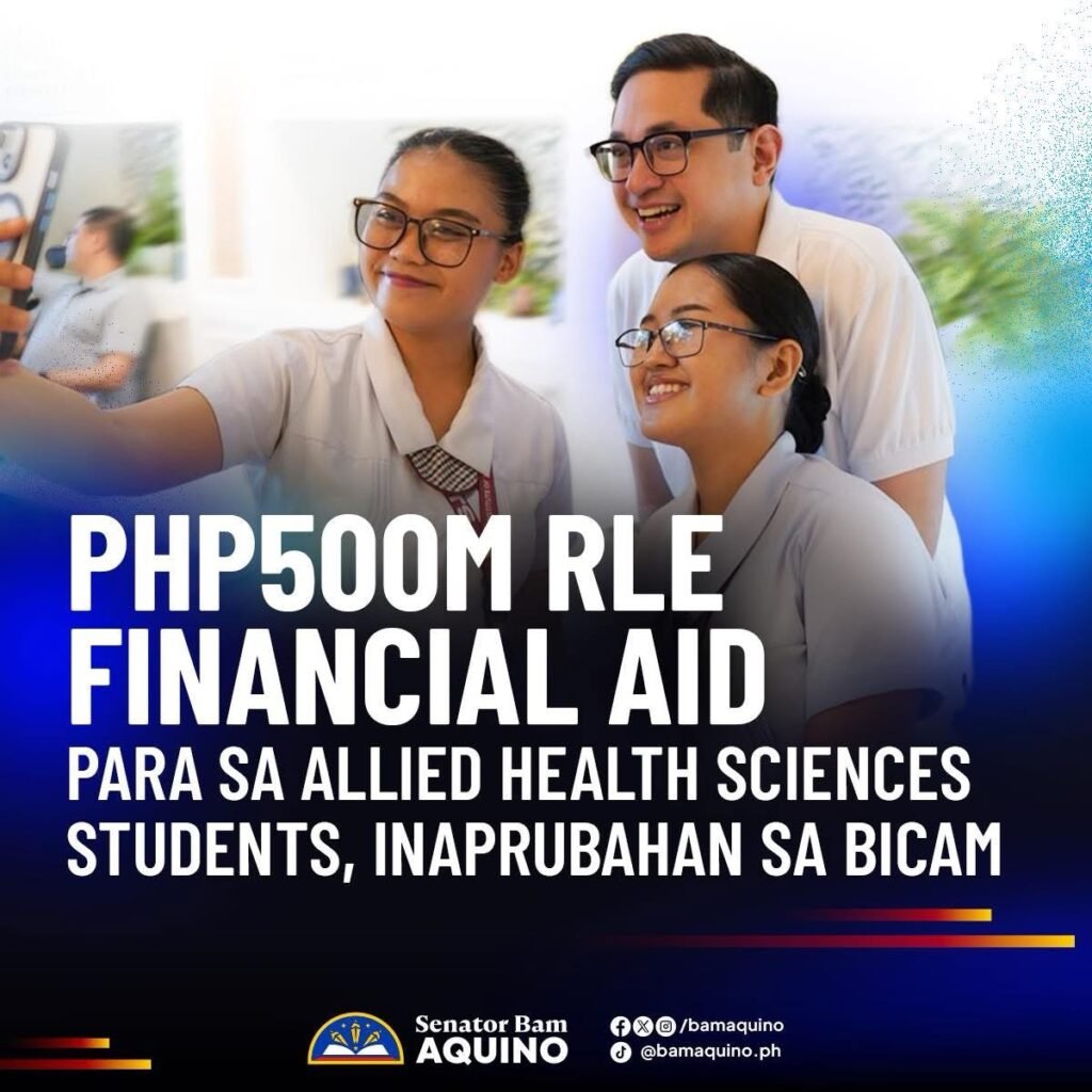 Senator Bam Aquino secured P500 million in financial assistance for Related Learning Experience (RLE) of nursing and allied health sciences programs students in the 2026 national budget.