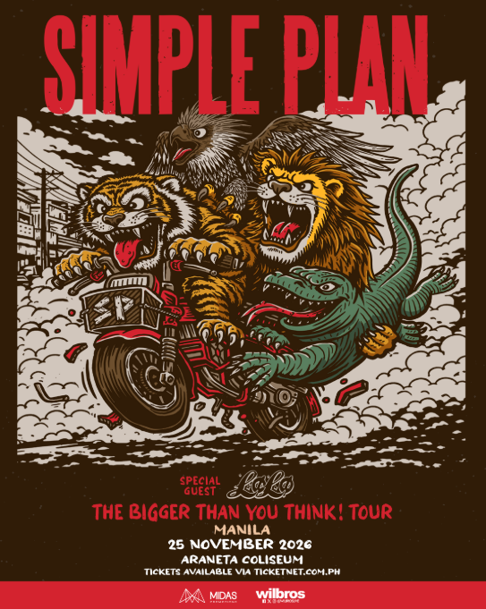 Announcement – Multi-platinum pop-punk icons SIMPLE PLAN will make their highly anticipated return to Manila with their new headline tour “The Bigger Than You Think!” Tour on November 25, 2026 at the Araneta Coliseum. Presented by Midas Promotions and Wilbros Live. The tour promises an unforgettable night of nostalgia, energy and fan favorite anthems.
